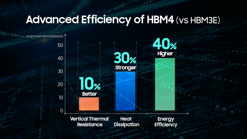 HBM4’s architecture delivers a 40% reduction in power consumption compared to its predecessor HBM3E, significantly lowering the energy demands of AI infrastructure. Thermal performance is equally enhanced, featuring a 10% improvement in thermal resistance and 30% stronger heat dissipation capabilities. These metrics ensure that HBM4 maintains sustained performance under the thermal loads typical of AI datacenter environments.