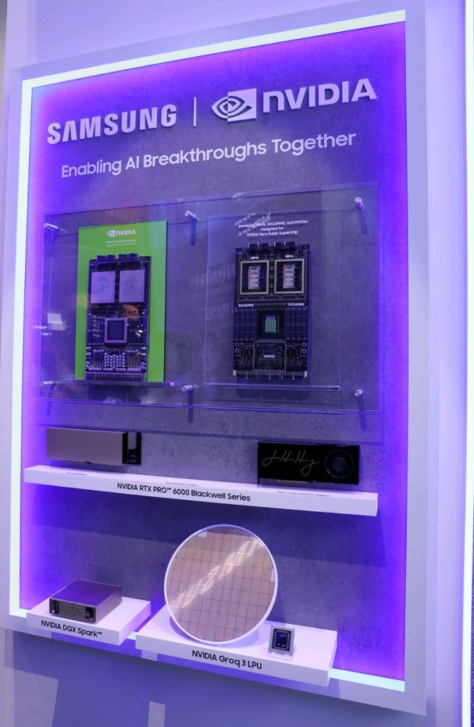 또한 ‘Nvidia Gallery’를 별도로 구성해 ▲Rubin GPU용 HBM4 ▲Vera CPU용 SOCAMM2 ▲스토리지 PM1763을 Vera Rubin 플랫폼과 함께 전시했으며, 특히 기조연설에 언급돼 청중의 관심이 집중된 그록3 LPU 4나노 웨이퍼 실물도 일반에 공개해 눈길을 끌었다.